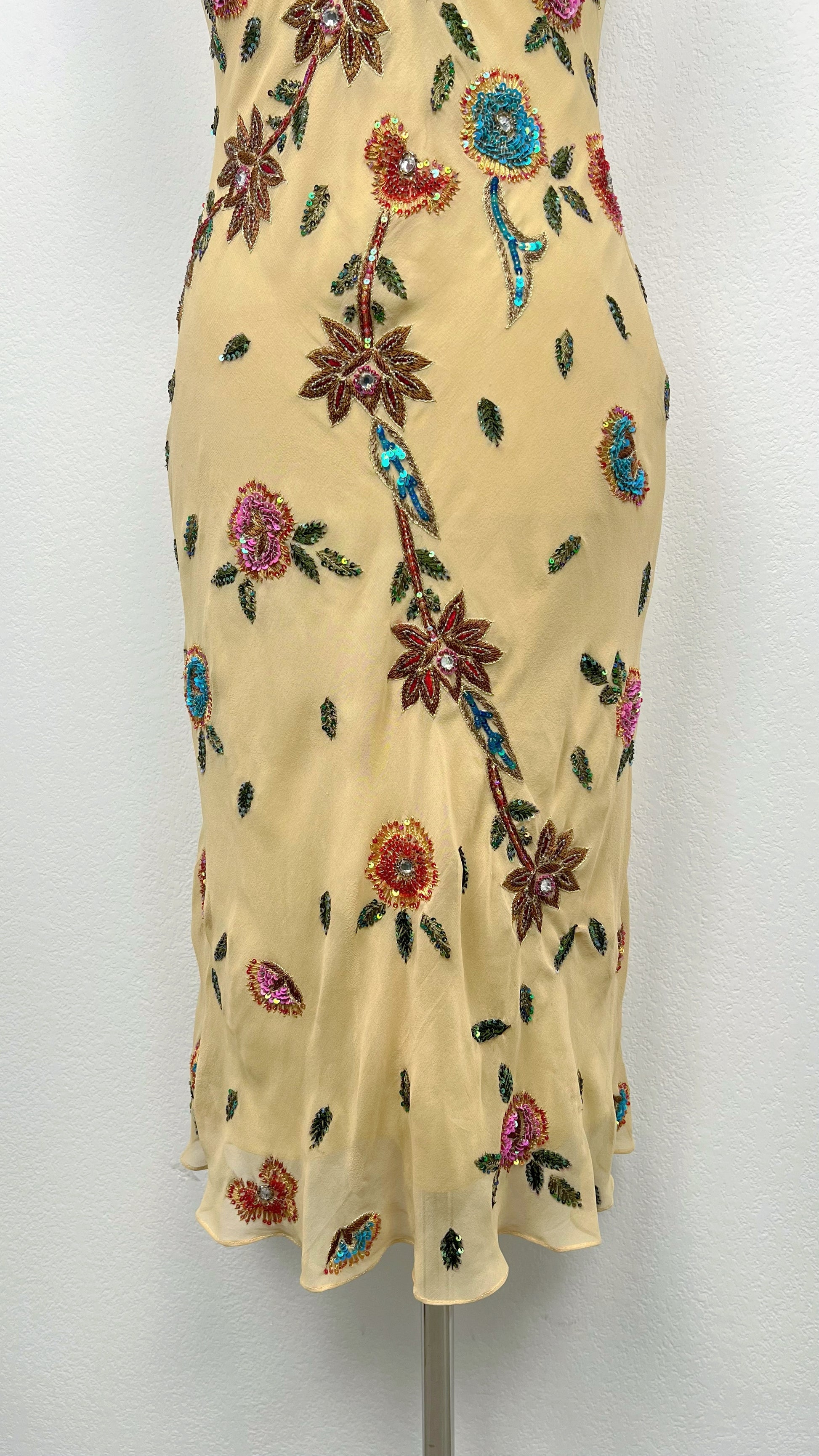 🌸 Details: ruffles, embroidery, beads
