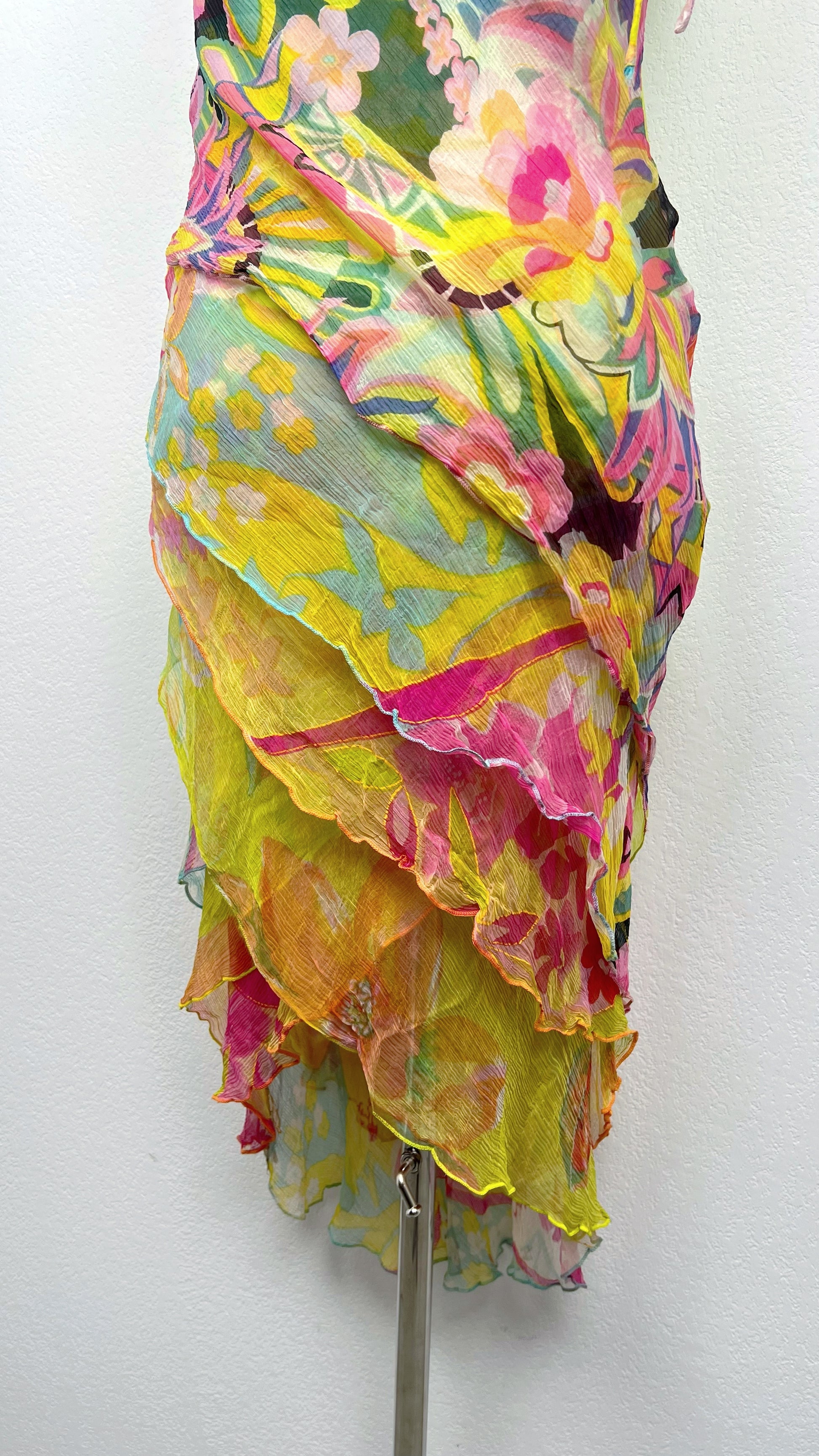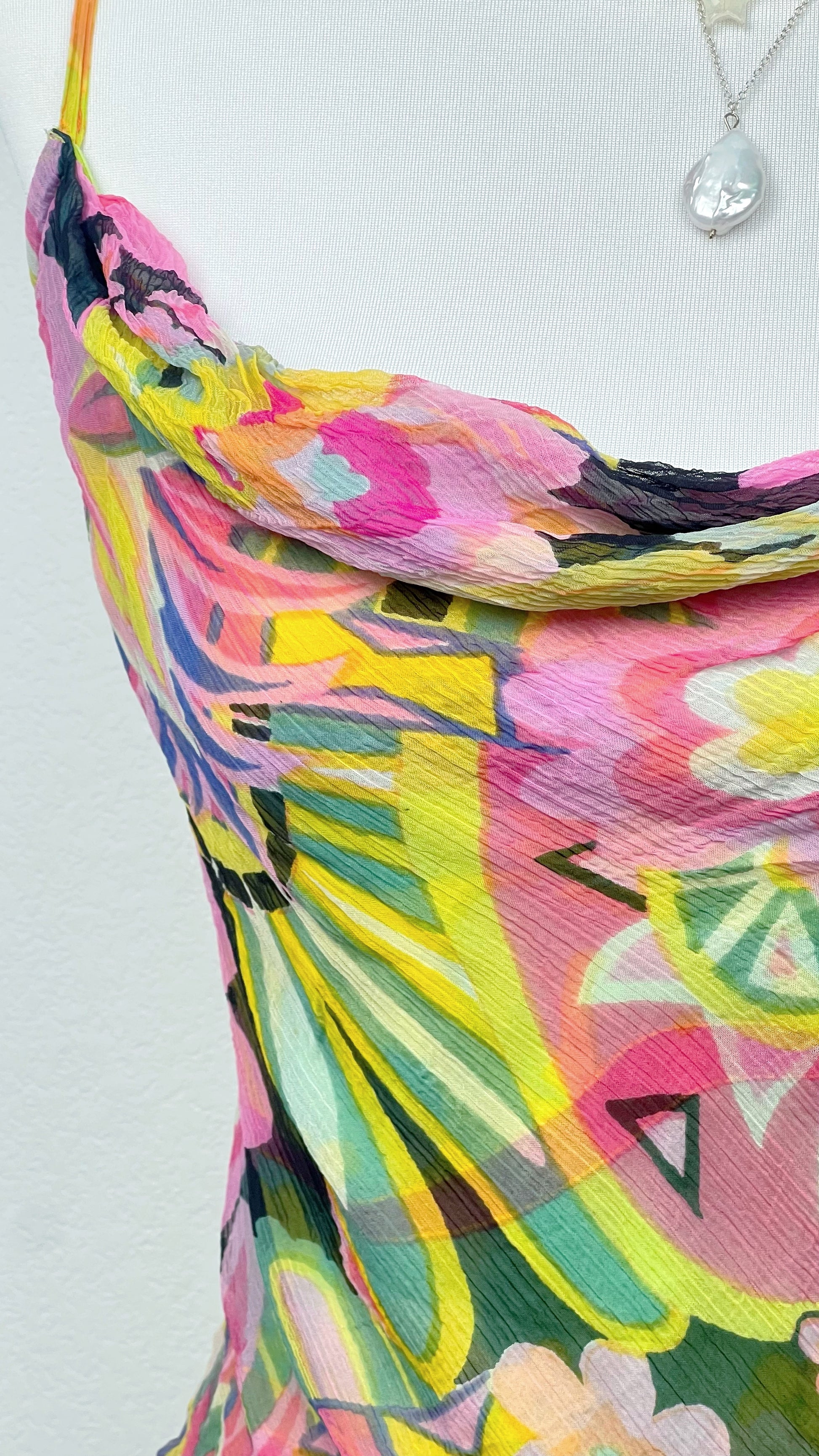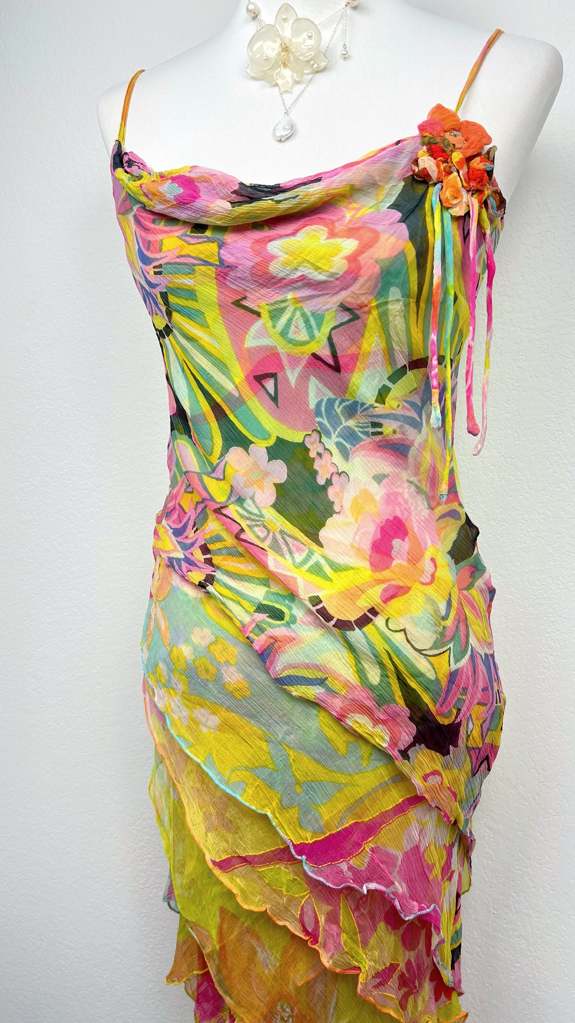 Derhy dress in size S/M — a rare, vibrant piece in fluid viscose.