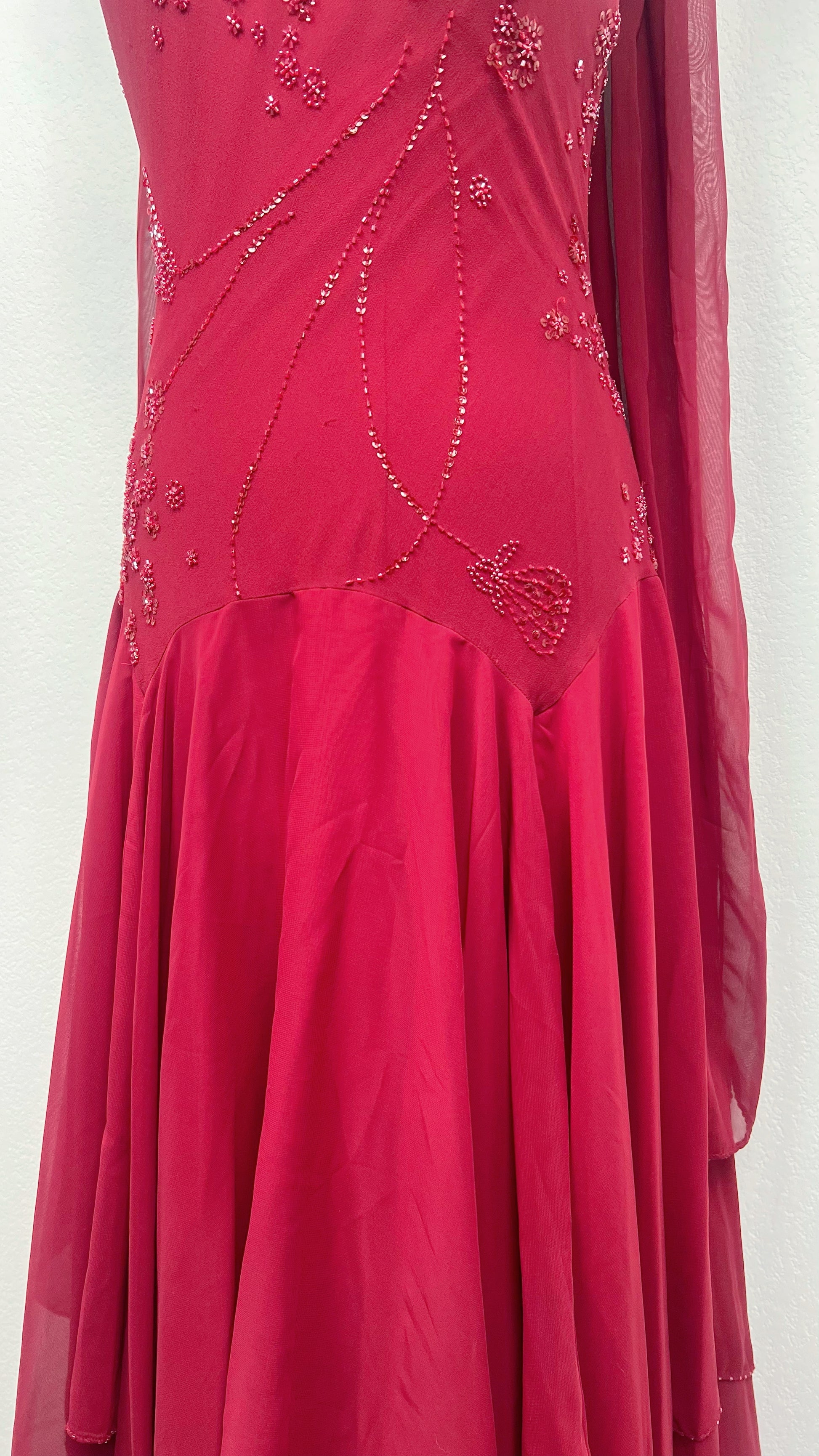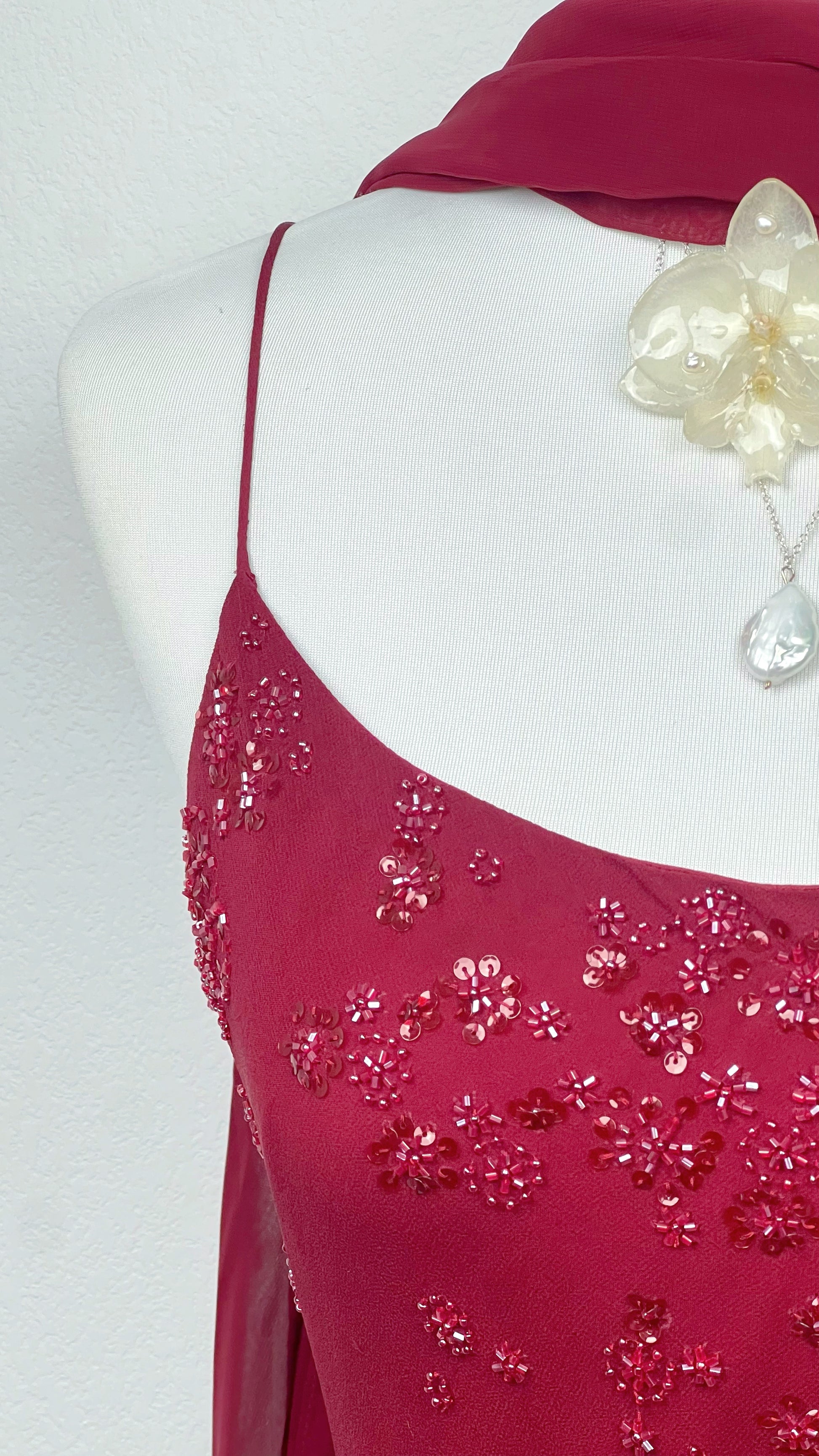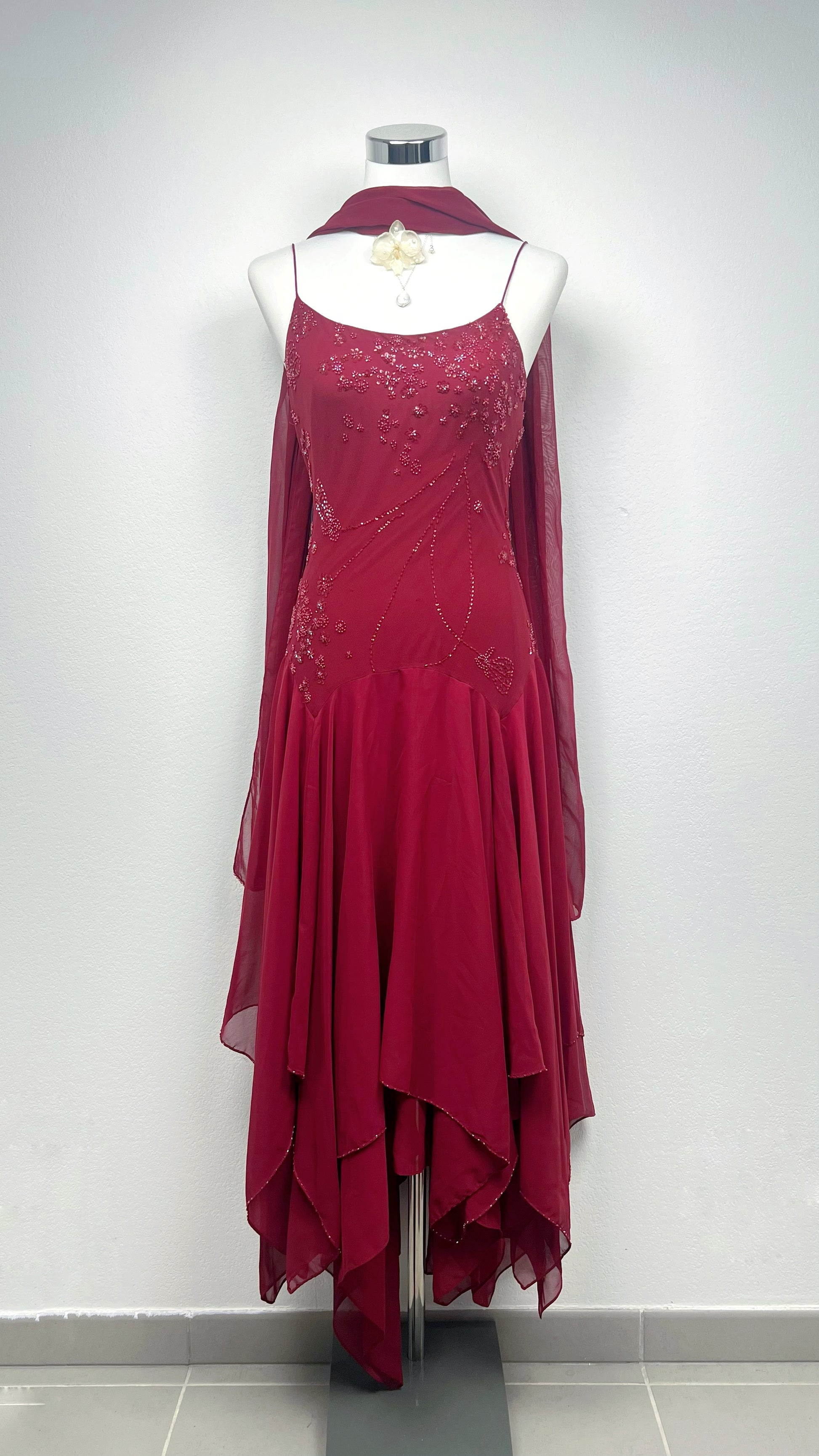 Crimson Garden est une robe rare et élégante pensée pour sublimer la silhouette avec un charme théâtral et romantique. Son tissu fluide en soie drapée crée un mouvement aérien, tandis que les broderies perlées viennent dessiner des motifs floraux subtils sur le bustier. Sa coupe fluide et asymétrique donne une allure de fée moderne, à la fois gracieuse et puissante.