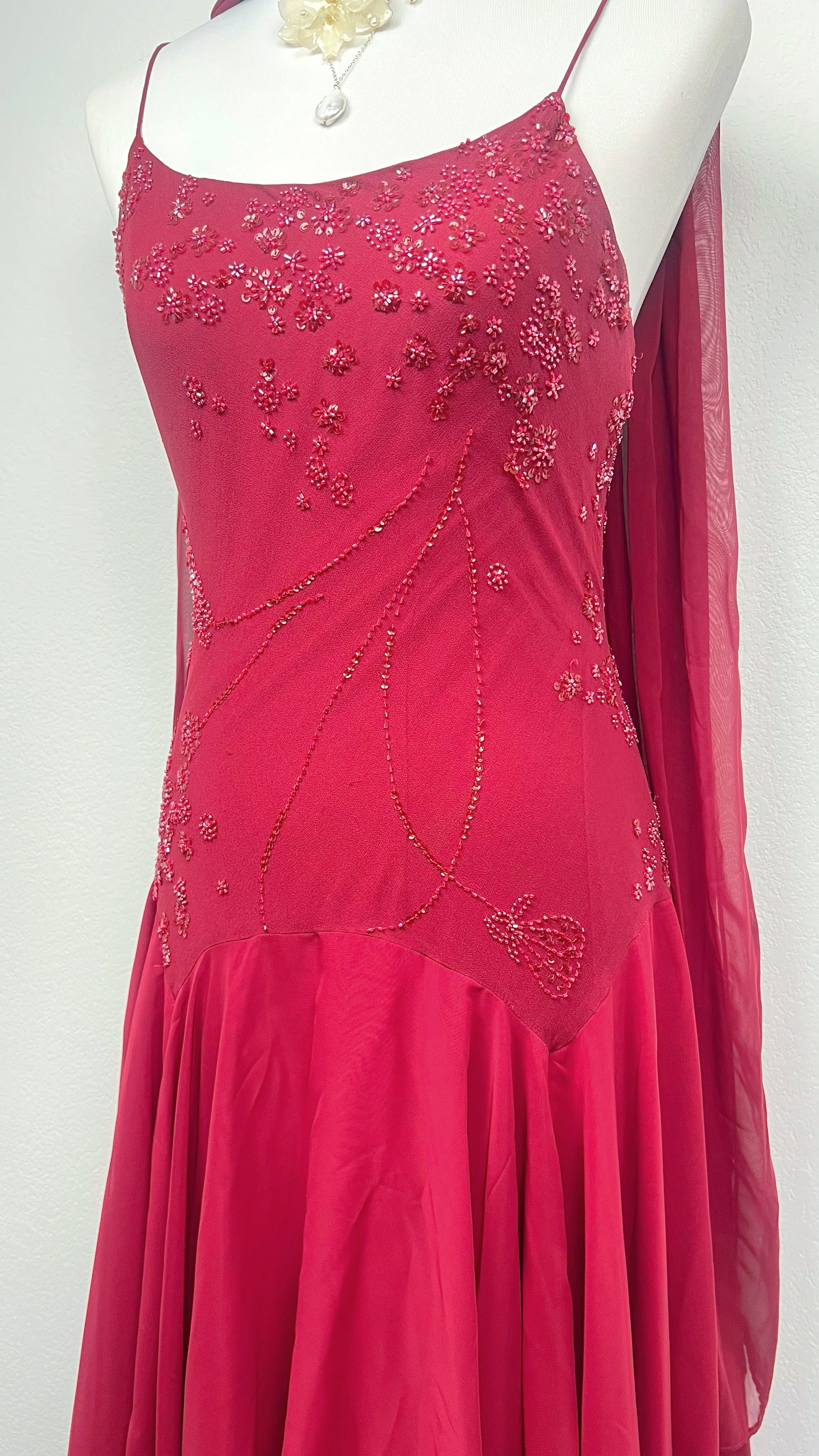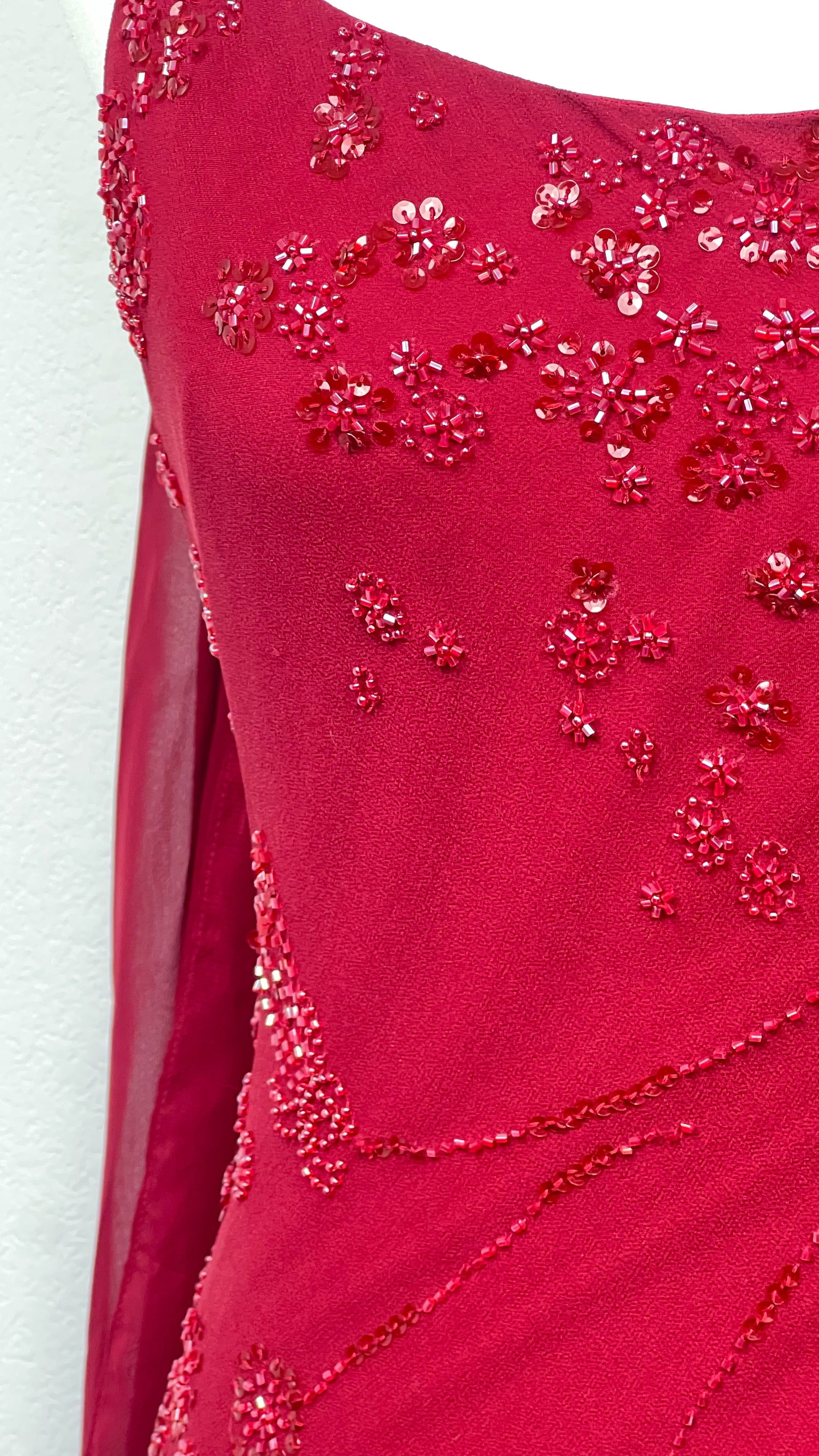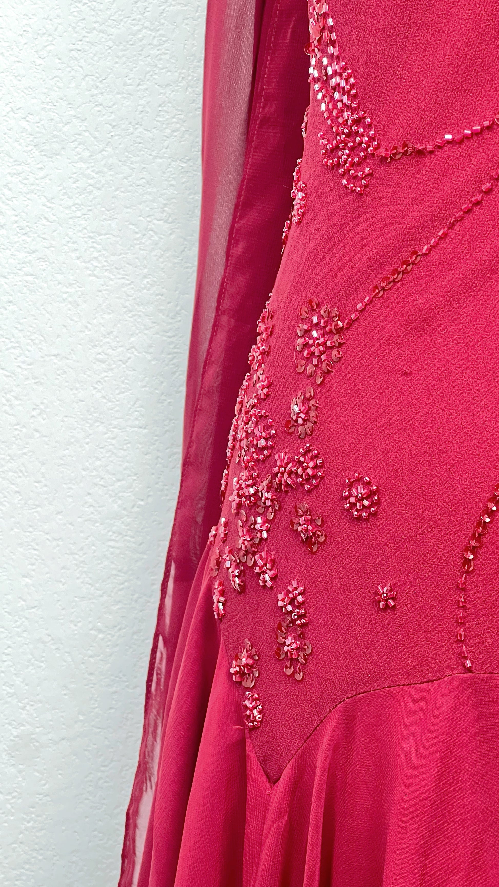 Crimson Garden est une robe rare et élégante pensée pour sublimer la silhouette avec un charme théâtral et romantique. Son tissu fluide en soie drapée crée un mouvement aérien, tandis que les broderies perlées viennent dessiner des motifs floraux subtils sur le bustier. Sa coupe fluide et asymétrique donne une allure de fée moderne, à la fois gracieuse et puissante.