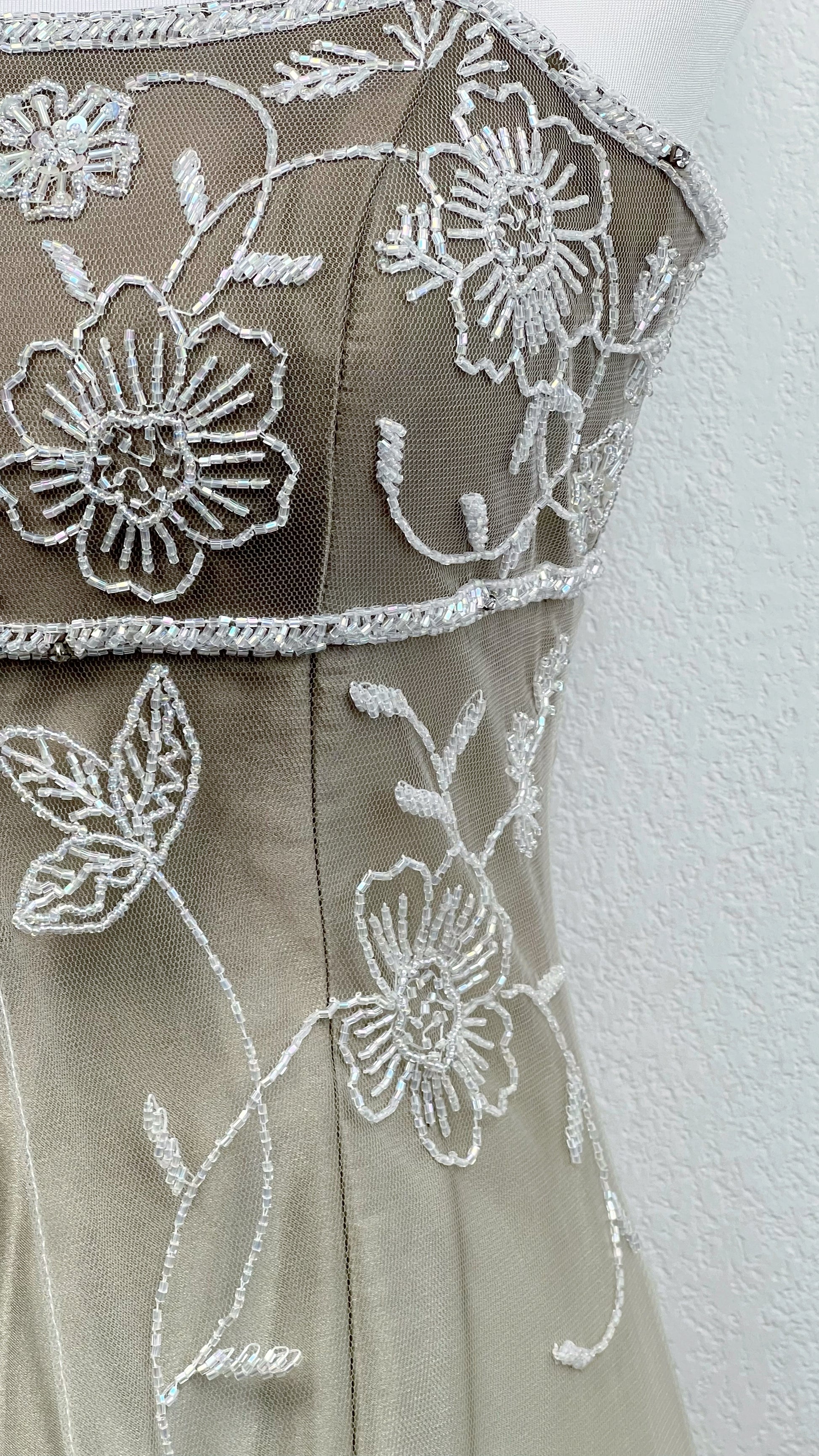 Robe ivoire d’une rareté absolue, délicate et presque irréelle, comme sortie d’un songe ancien. Cette pièce évoque les silhouettes éthérées du début des années 2000, entre romantisme pur et élégance intemporelle. Sa teinte ivoire douce capte la lumière avec subtilité et sublime instantanément le teint.